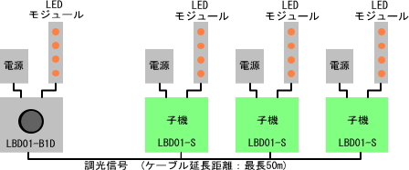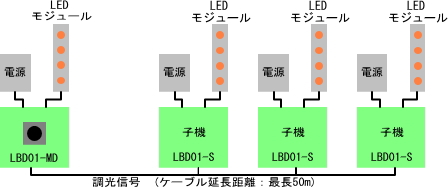※調光信号  : 子機基板を最大10台まで駆動可能。ケーブル延長距離、最大50m
